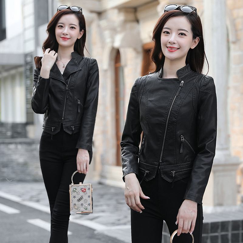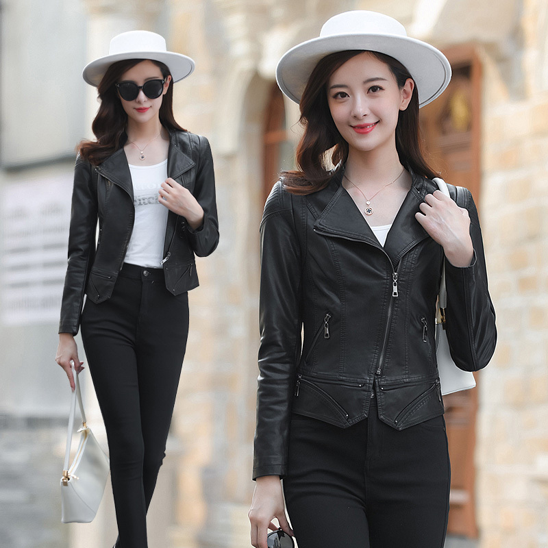 【免费试穿,退换无忧】2018春秋新款韩版修身显瘦真皮百搭休闲机车皮夹克小皮衣女外套潮品牌_4 XL 9886黑色¥2268.00热销中 -
