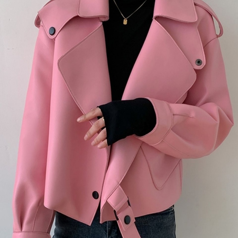 举翼王子2024新款绵羊皮真皮皮衣女明星同款百搭短款韩版宽松机车夹克外套 2XL 粉色(定做不退换)¥898.00热销中 -