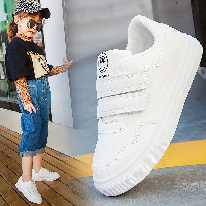 儿童小白鞋女童网鞋男童板鞋新款中大童透气白色小学生休闲运动鞋 28码16.5cm 白色皮面笑脸款¥40.80热销中 -