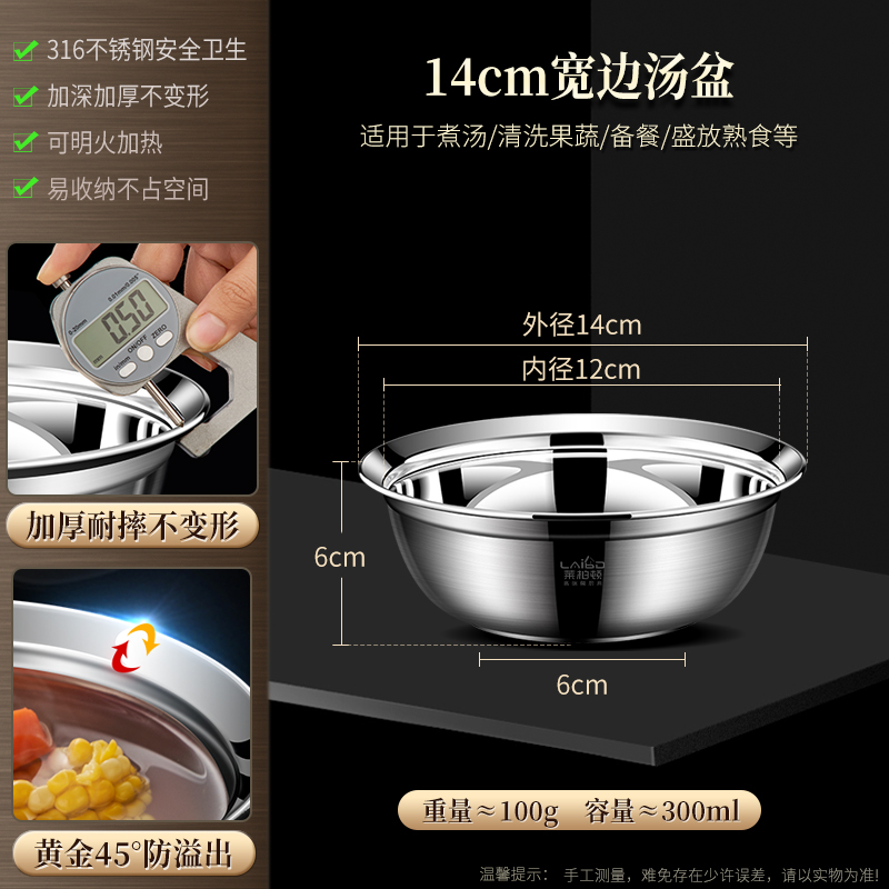 防溢盆 【14cm】316钢汤盆-升级加厚宽边¥19.90热销中 -