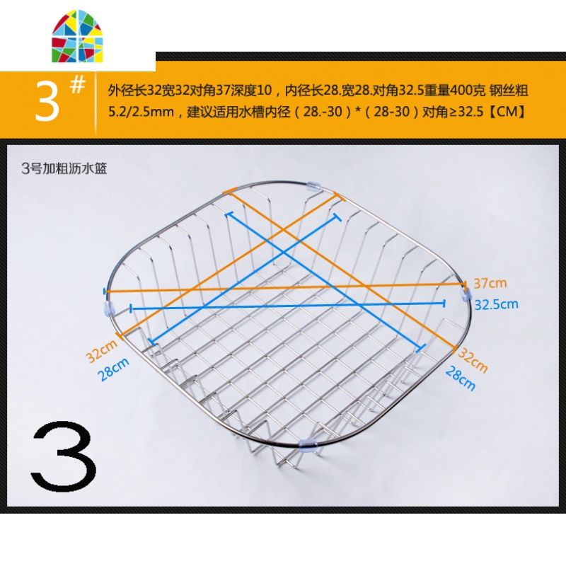 水沥水架304不锈钢沥水篮洗菜盆滤水蓝碗碟挂篮 置物架厨房配件 FENGHOU 39号加粗外径(38*34)*_583¥76.00热销中 -