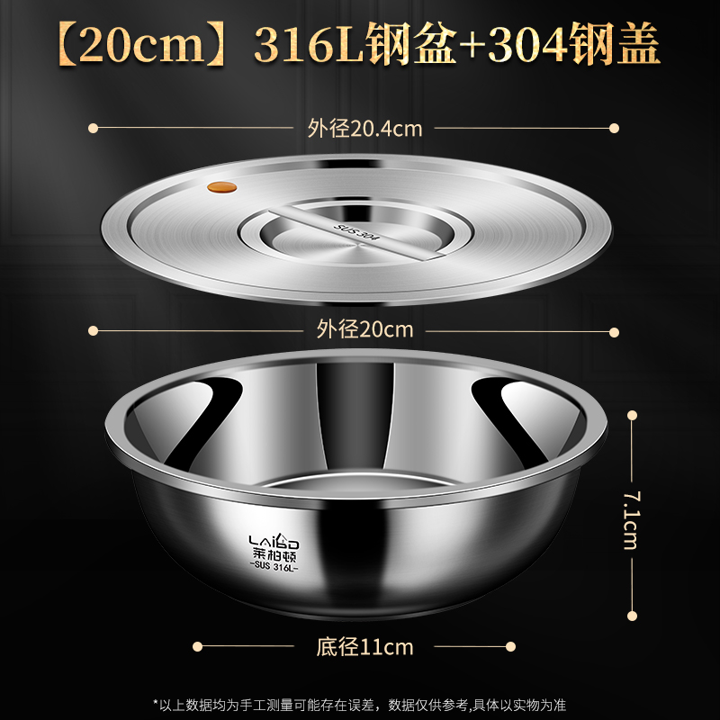 316L不锈钢盆 【20cm】316L汤盆+304盖(超声波清洗不发黑)¥58.90热销中 -