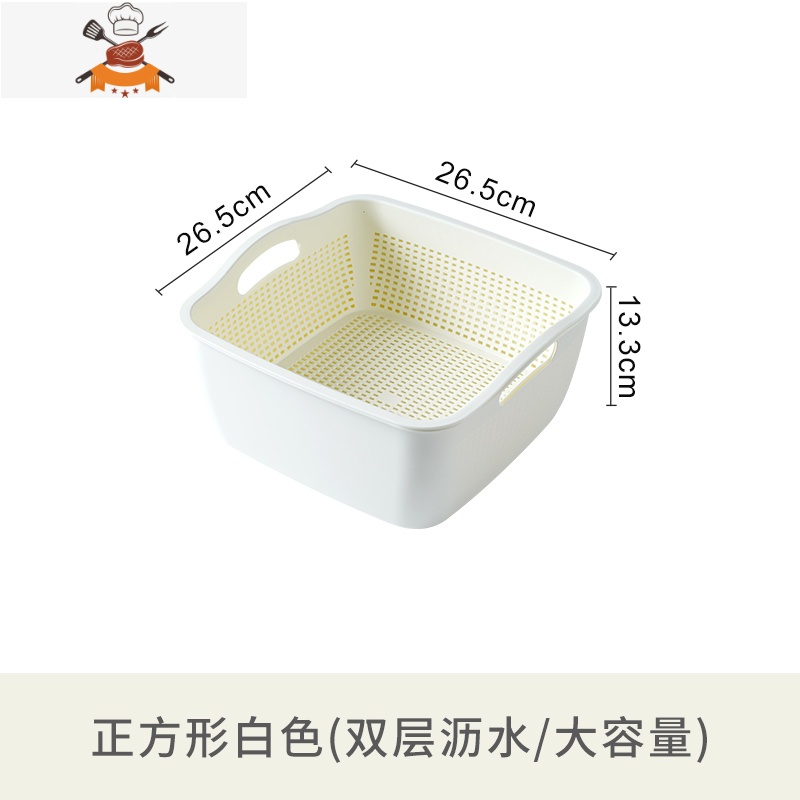 双层洗菜盆沥水篮家用厨房塑料果蔬器水果盘镂空收纳筐洗菜篮子 敬平17SJW4 正方形白色¥28.44热销中 -