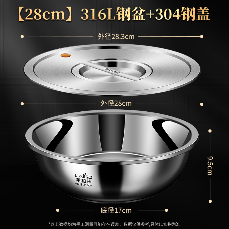 316L不锈钢盆 【28cm】316L汤盆+304盖(超声波清洗不发黑)¥86.90热销中 -