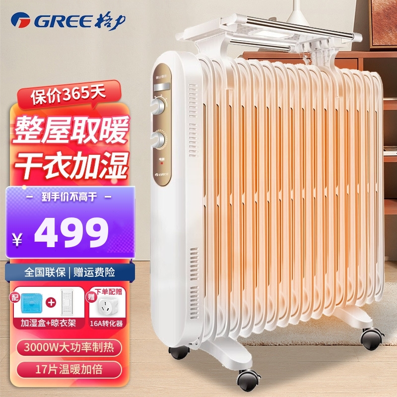 格力(GREE)电油汀取暖器 NDY19-S6130 家用油丁电暖器 节能取暖器 干衣加湿暖气片 17片3000W油汀每599元减100元¥599.00热销中1071评价 99.0%好评 -