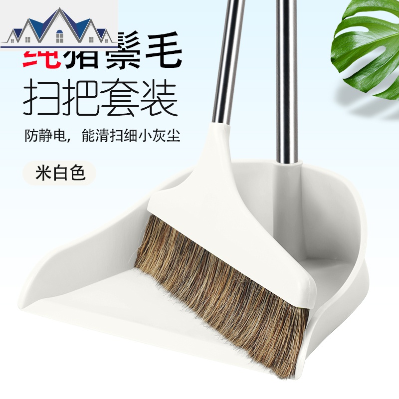 纯猪鬃毛扫把簸箕套装家用清洁软毛笤帚扫帚不粘头发防静电马鬃扫_4_418 米白色扫把套装【100%纯猪鬃】¥108.00热销中 -