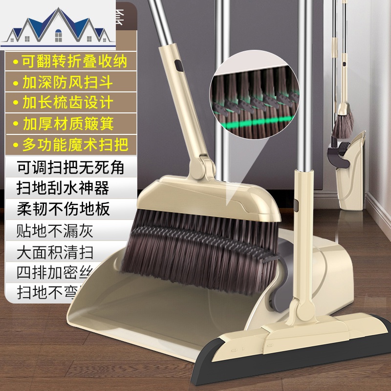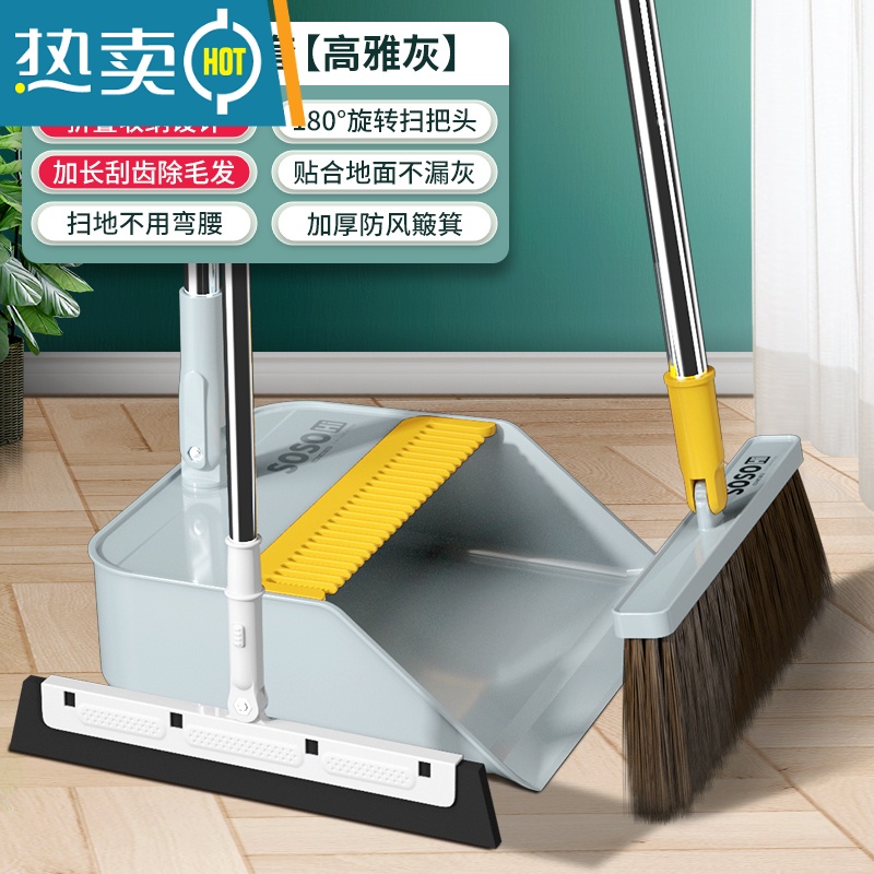 敬平扫把簸箕套装组合家用软毛笤帚扫头发器扫帚扫地撮箕魔术刮水器 热卖升级款高雅灰-折叠刮齿+刮水扫把(3件套)¥90.00热销中 -