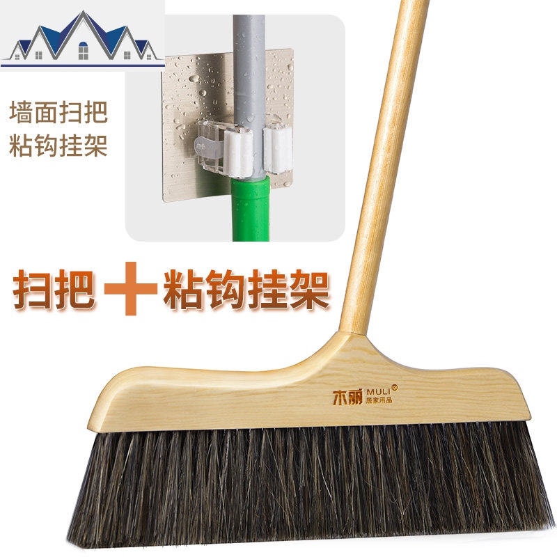 扫地笤帚猪鬃毛扫把簸箕套装家用单个扫帚组合软毛扫头发刮水神器_9_518 木柄扫把+粘钩挂架¥52.00热销中 -