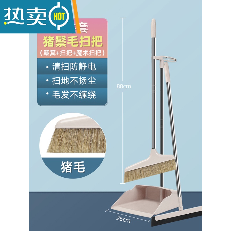 纯猪鬃毛扫把簸箕套装家用清洁软毛笤帚扫帚不粘头发防静电马鬃扫_4_418 卡其色扫把套装【100%纯猪鬃】¥108.00热销中 -
