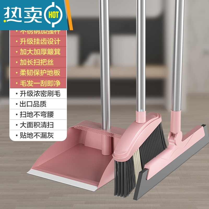敬平扫把簸箕套装组合家用扫帚网红不粘头发撮箕捎把扫地撮子笤撮用 豪华款北欧清纯粉3件套加厚长挂齿¥36.00热销中 -