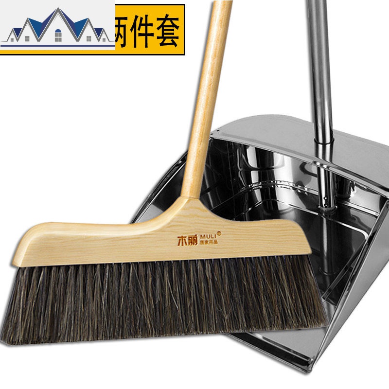 扫地笤帚猪鬃毛扫把簸箕套装家用单个扫帚组合软毛扫头发刮水神器_9_518 木柄鬃毛扫把+簸箕¥95.00热销中 -