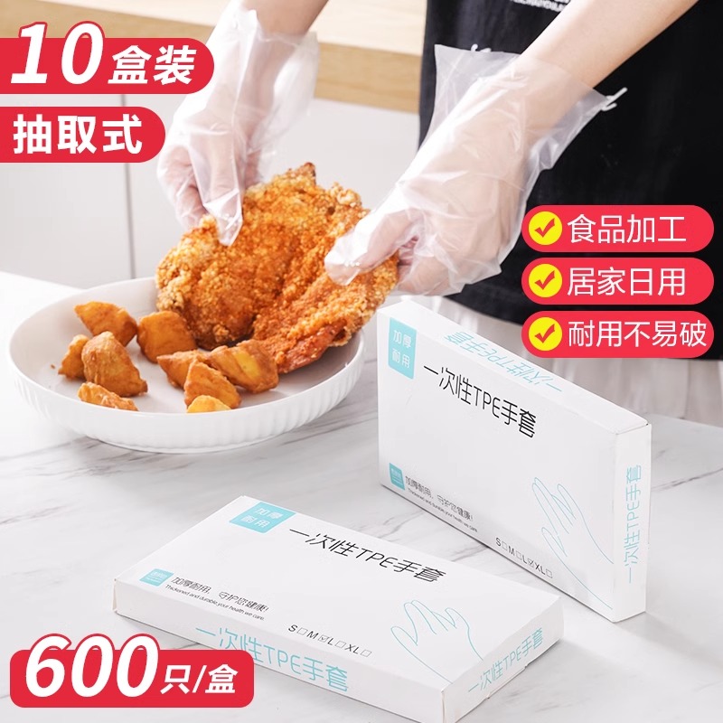 一次性手套pe食品级专用加厚耐用家用抽取式透明吃小龙虾餐饮盒装 600只10盒装抽取式升级加厚满1件打9折¥34.00热销中 -