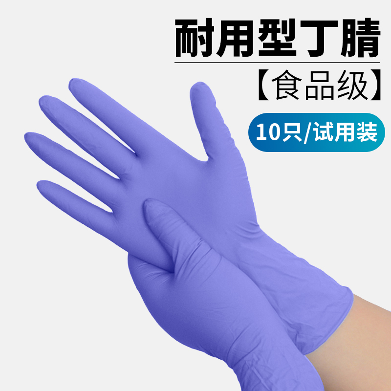 一次性丁腈手套食品级耐用型丁晴橡胶乳胶厨房清洁洗碗防水专用 紫色10只看质量【纯丁腈材质】满1件打9折¥10.00热销中 -