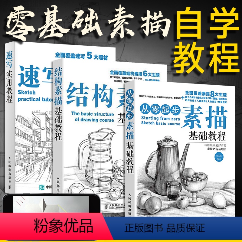 【正版】从零起步素描基础教程+结构素描+速写3册 素描书入门教程材零基础初自学到精通绘画书籍临摹速写书美术生线描画画静¥53.74热销中