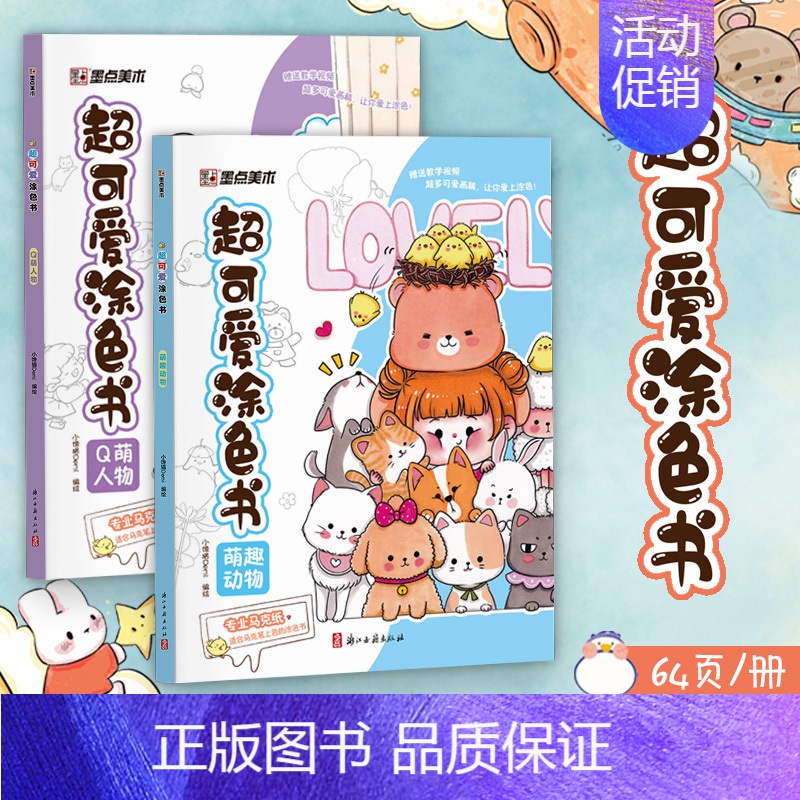 【2册】Q萌人物+萌趣动物 【正版】超可爱涂色书4册儿童画画本幼儿园涂色绘本小学生成人减压涂色书美食填色绘画宝宝填色涂鸦¥87.00热销中