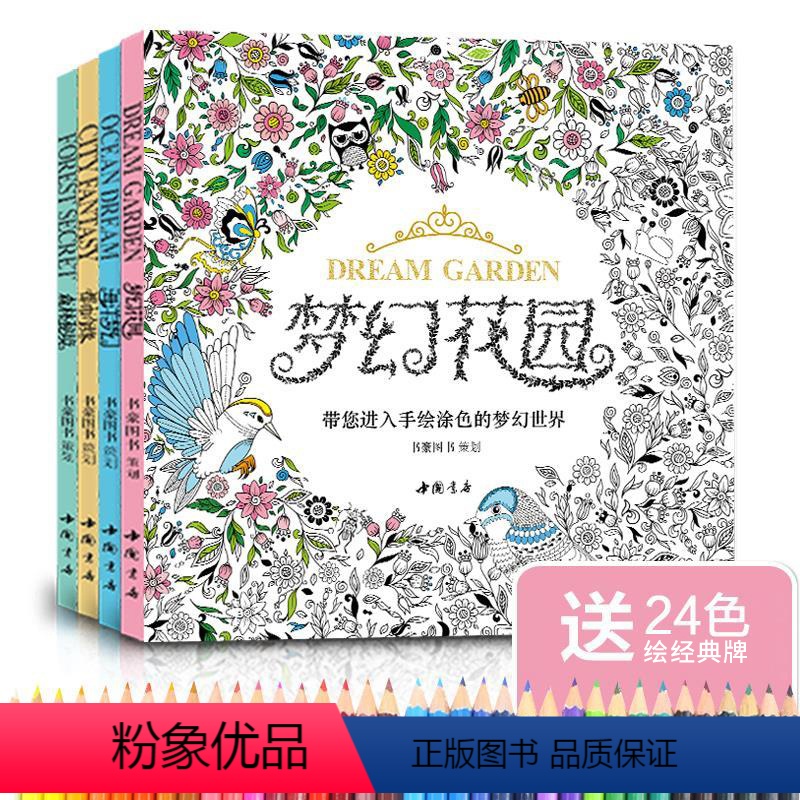 【正版】送24色彩铅4册梦幻花园+森林秘境+海洋梦幻+都市奇缘 创意涂色本书籍成人大人线稿手绘减压解压填色画儿童小学生¥116.40热销中