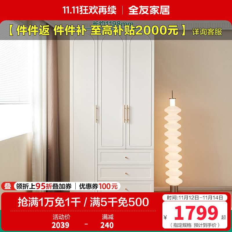 全友家居加高衣柜600605 60天 【米白】加高三门衣柜 详询客服¥2039.00热销中 -