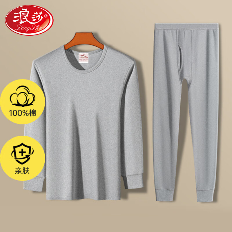 自营 浪莎秋裤男纯棉7A男士修身打底棉毛裤中年秋冬防螨保暖裤底裤 深灰 XXL/180 XL/175 【纯棉套装】浅灰¥59.90热销中 -