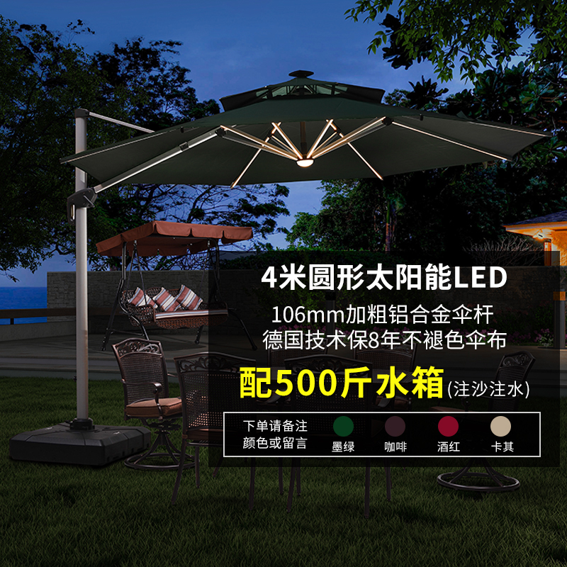 紫叶户外遮阳伞别墅罗马伞户外伞花园太阳伞庭院伞室外露台遮阳棚 带灯3米方【82mm铝合金杆,370斤水箱】¥1350.00热销中