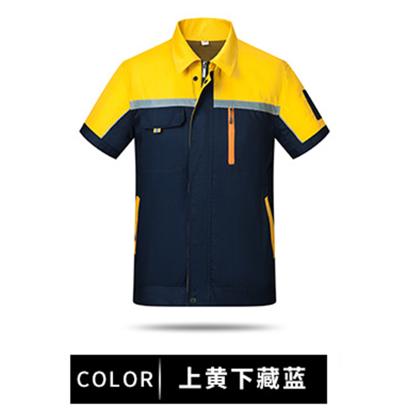 夏季短袖工作服套装+前胸后背双反光条+后背透气网设计+六色可选 上黄下藏蓝¥147.00热销中 -