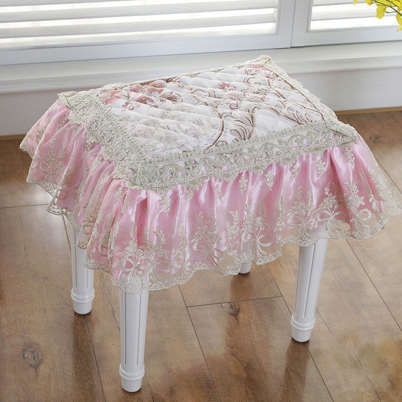 蕾丝方凳椅子垫座梳妆防滑屁垫长方垫靠垫化妆凳子垫可绑餐椅套罩_1_360 30*40cm(带绑带) 蕾莎-浅粉¥40.42热销中 -