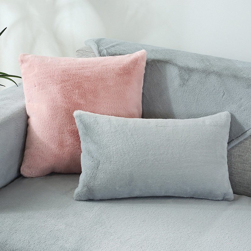 毛绒办公室沙发靠垫加厚汽车靠枕纯色家用兔毛大抱枕靠背腰靠腰枕 45*45cm抱枕套不含芯 浅灰¥76.32热销中 -